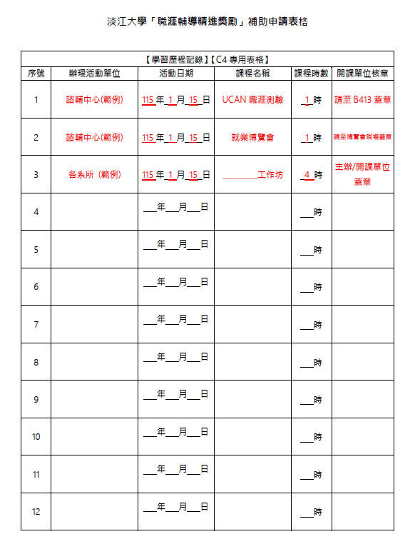參與職涯講座、公司說明會、證照輔導課程、職涯規劃與就業協助、職涯探索活動等相關職涯活動。 377_e4ca89-7a> |